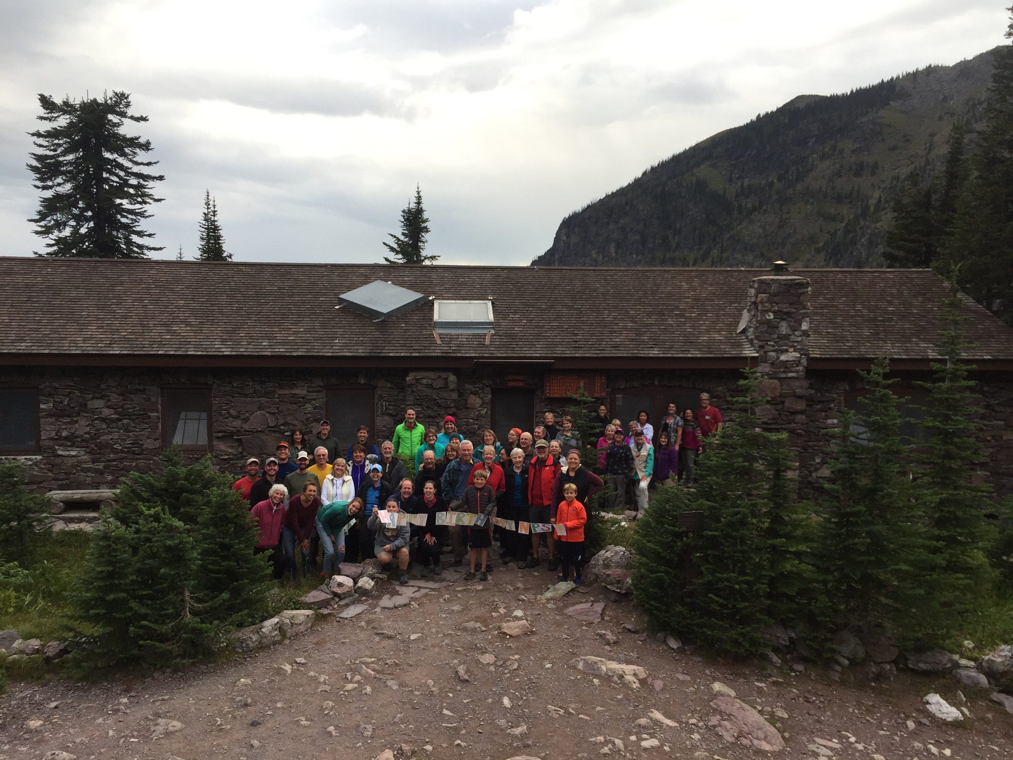 Celebrating the National Park Service centennial at Sperry Chalet.